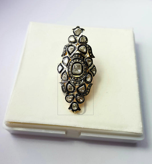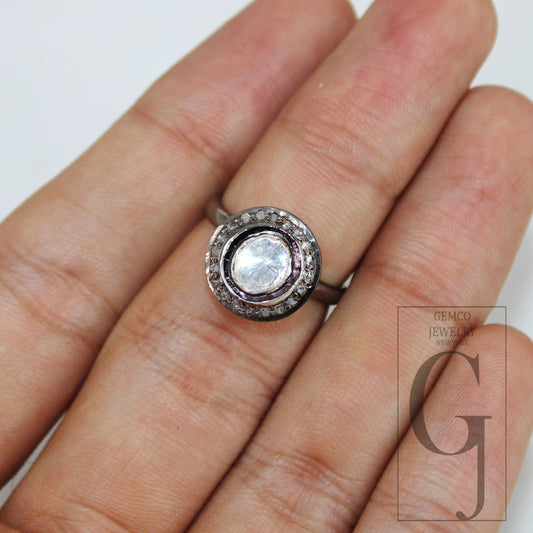 Very beautiful victorian style flat diamond polki ring Rosecut pave diamond rings 925 sterling silver handmade silver finish diamond ring