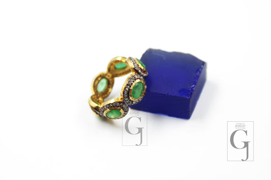 Very Beautiful 14k Gold Emerald Designer Ring Band Rosecut Pave Diamond Rings 925 Sterling Silver Handmade Silver Finish Diamond Ring