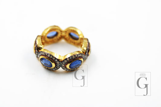 Very beautiful kyanite designer Rosecut pave diamond rings 925 sterling silver handmade silver finish diamond ring
