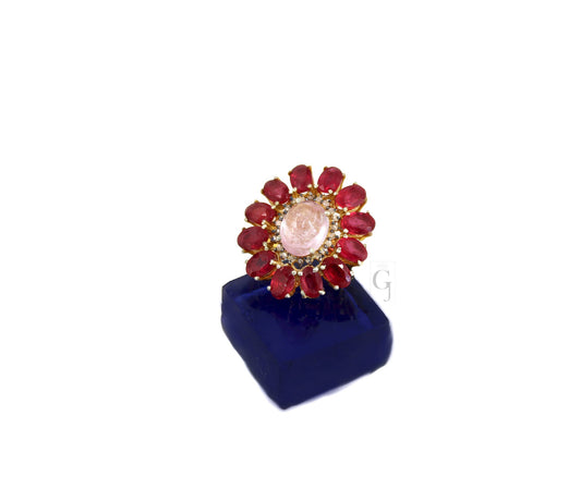 Very Beautiful color of 2023 viva magenta ruby tourmaline ring ruby Rosecut pave diamond ring 925 sterling silver handmade diamond ring