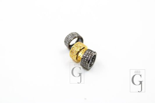 Rondelles Pave Diamond Bead / Spacers Design Pave Diamond 925 Sterling Silver Handmade Jewelry Diamond Fine Jewelry Supplie