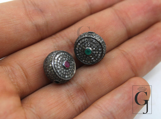 1pc Pave Diamond Button Beads / Spacers Design Pave Diamond 925 Sterling Silver Handmade Jewelry Diamond Fine Jewelry Making Supplies