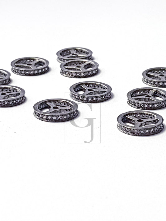 6mm/8mm/10mm/12mm Rondelles Pave Diamond Bead / Spacers Design Pave Diamond 925 Sterling Silver Handmade Jewelry Diamond Fine Jewelry