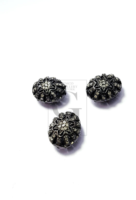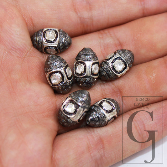Unique Designer Rosecut Pave Diamond Beads 925 Sterling Silver Handmade Silver Finish Diamond Beads