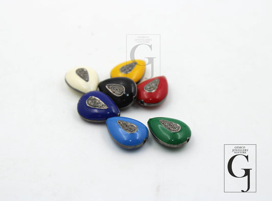 Pave Diamond Enamelling Bead/Spacers Design Pave Diamond 925 Sterling Silver Handmade Jewelry Diamond Jewelry Fine Jewelry 25X17mm Size