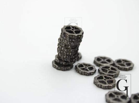 Flat Diamond Antique Look Polki Design Rosecut Pave Diamond Bead Spacers 925 Sterling Silver Handmade Silver Finish Diamond Bead 12mm Size