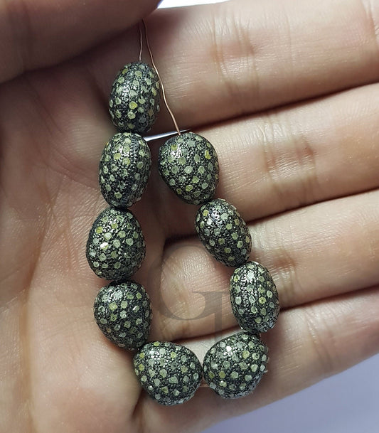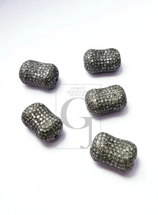 Rosecut pave salt and pepper diamond nugget beads 925 sterling silver handmade silver finish diamond beads 13mm x 11mm size beads,spacers