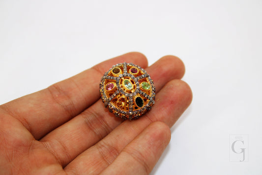 18k Gold Multi Tourmaline Bead Pave Diamond Bead/Spacers Design Diamond 925 Sterling Silver Handmade Jewelry Making Supplies 25mm Size