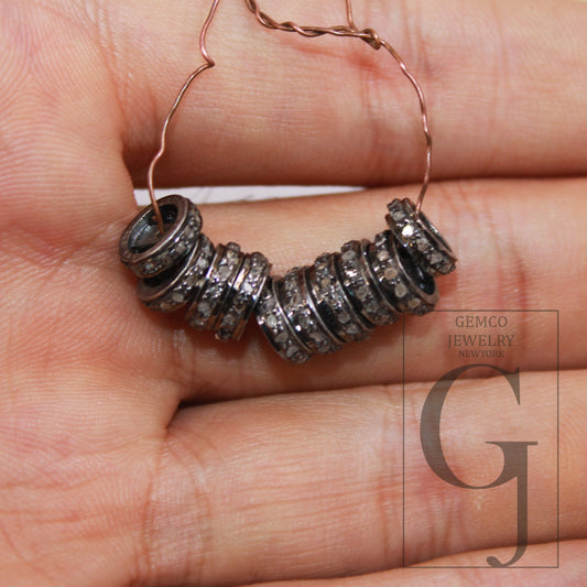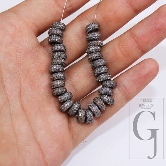 8mm Rondelles Pave Diamond Beads Spacer Design Pave Diamond 925 Sterling Silver Handmade Jewelry Diamond Fine Beaded Jewelry Making Supplies