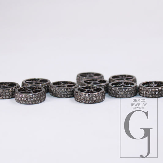 Rondelles Pave Diamond Bead / Spacers Design Pave Diamond 925 Sterling Silver Handmade Jewelry Diamond Fine Jewelry Supplies 8mm/12mm Size