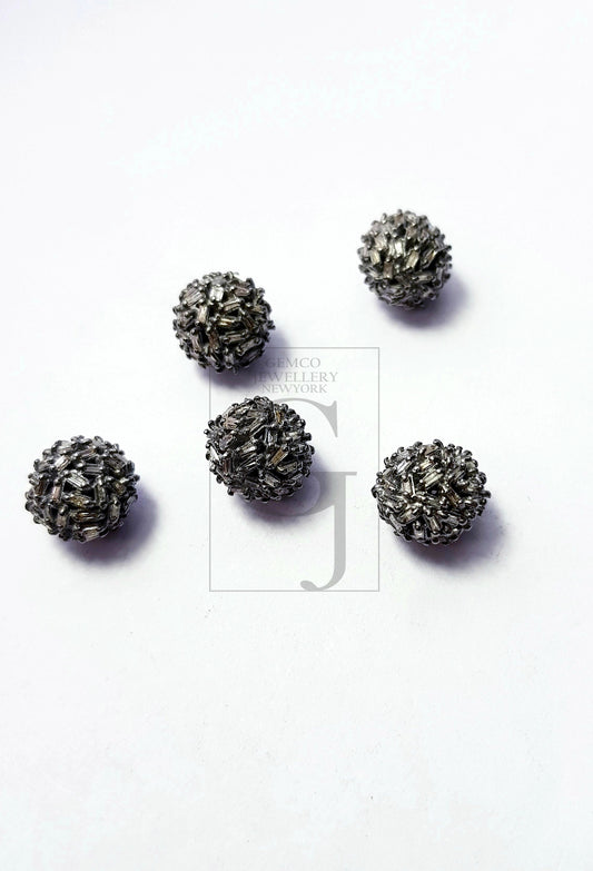 Very beautiful Rosecut pave diamond bead 925 sterling silver handmade silver finish ball design diamond bead