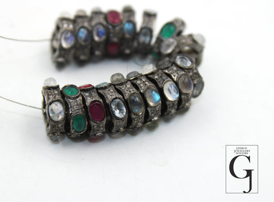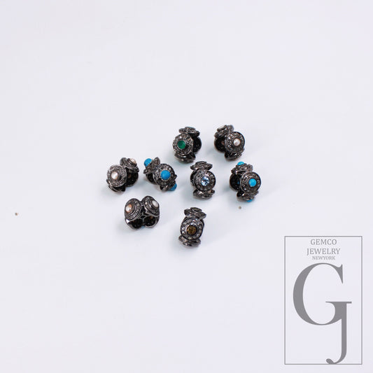 1pc Pave Rosecut Diamond 925 Sterling Silver Handmade Pave Diamond With Different Gem Stones Rondelles/Bead/Spacer 12mm Size Jewley Supplies