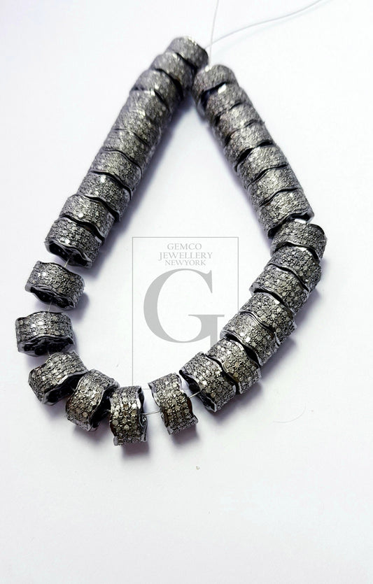 1pc 3 Line Diamond Rosecut Pave Diamond Bead Rondelles 925 Sterling Silver Handmade Silver Finish Diamond Bead Rondelles Spacers 10mm 8mm
