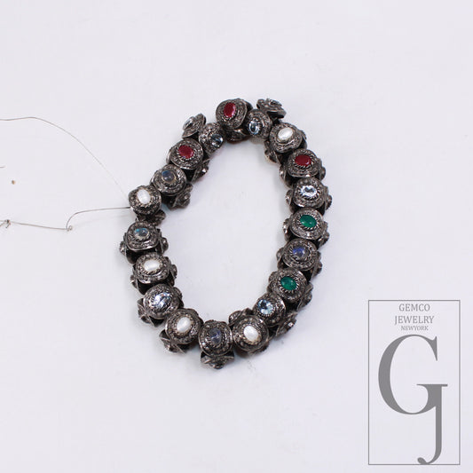 1pc Pave Rosecut Diamond 925 Sterling Silver Handmade Pave Diamond With Different Gem Stones Rondelles/Bead/Spacer 14mm Size Jewley Supplies