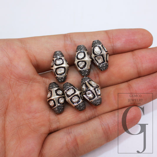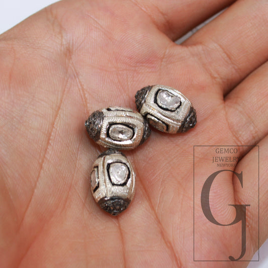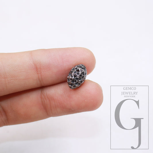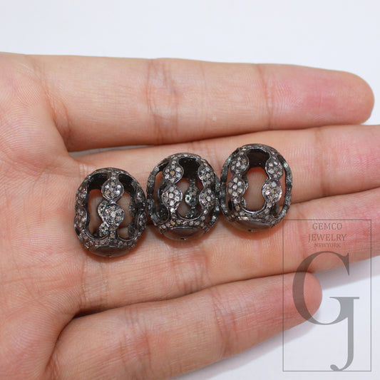 1pc Oxidized Bead Designer Rosecut Pave Diamond Bead 925 Sterling Silver Handmade Silver Finish Diamond Bead Ready To Make Jewelry Supplies