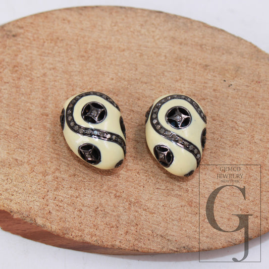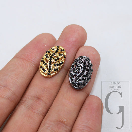 1pc Oval Pave Black Diamond Beads 925 Sterling Silver Handmade Black Pave Diamond Egg Design Bead / Spacers 10mm Jewelry Making Supplies