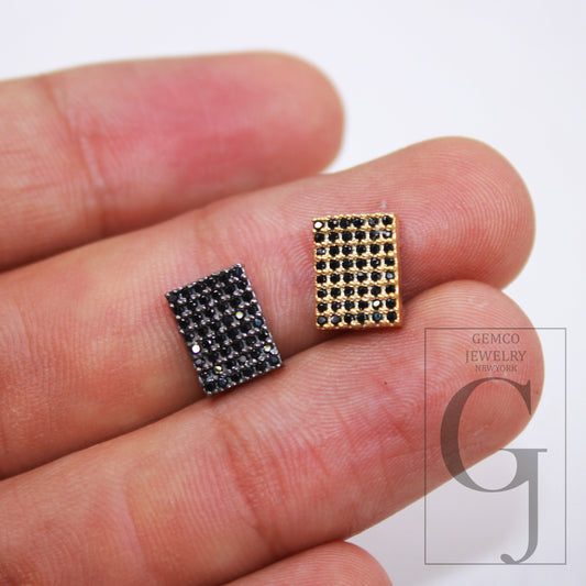 1pc Pave Rosecut Black Diamond 925 Sterling Silver Handmade Pave Black Diamond Bead / Spacers Square Shaped Design Square Beads