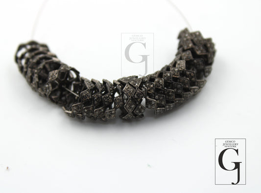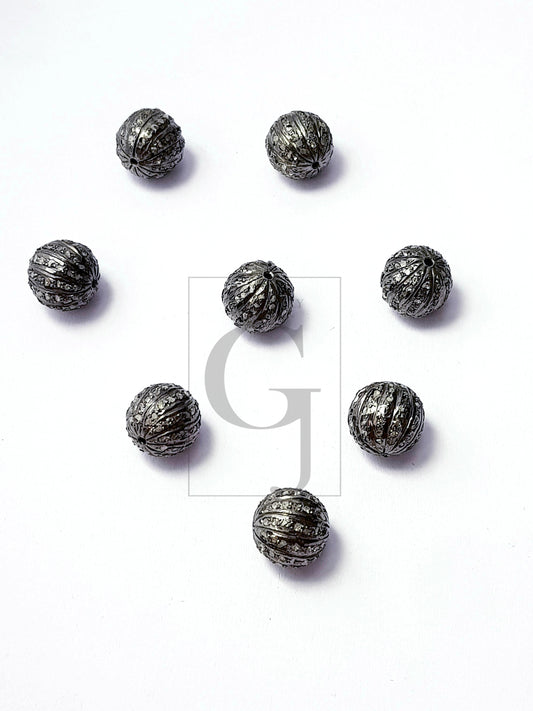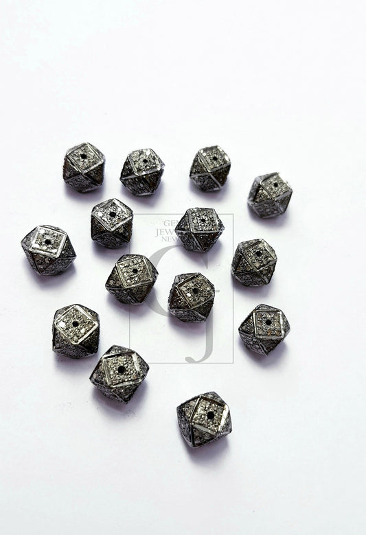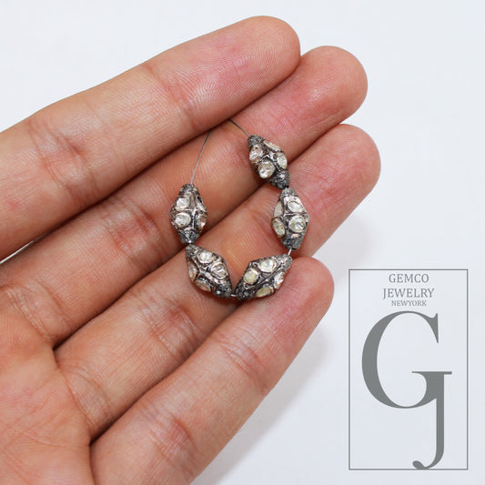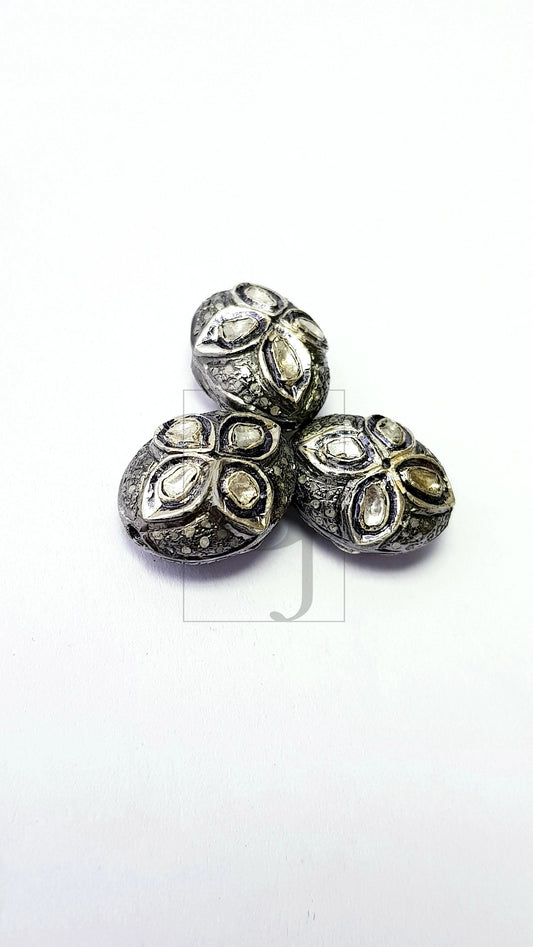 Beautiful Designer Rosecut Pave Diamond Bead 925 Sterling Silver Handmade Silver Finish Diamond Bead