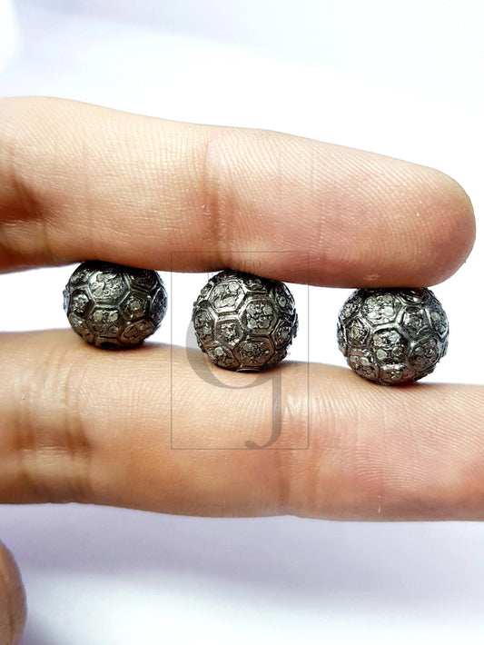 Very Beautiful 10mm Ball Shaped Rosecut Pave Diamond Bead 925 Sterling Silver Handmade Silver Finish Diamond Bead