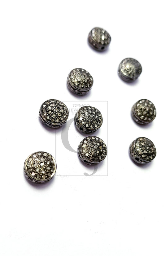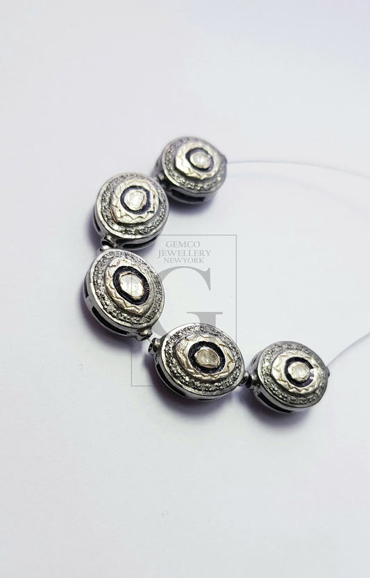 Coin Shaped Rosecut Pave Diamond Bead 925 Sterling Silver Handmade Silver Finish Diamond Bead