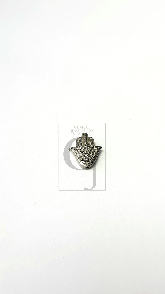 Beautiful Humsa Designer Rosecut Pave Diamond Bead 925 Sterling Silver Handmade Silver Finish Diamond Bead 14mm Size Bead