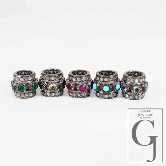 1pc 8mm 10mm Rondelles Pave Diamond Beads/Spacers Design Pave Diamond 925 Sterling Silver Handmade Jewelry Diamond Fine Jewelry Supplies