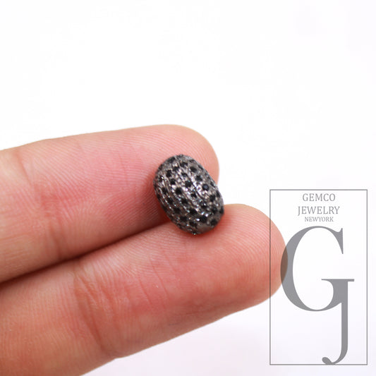 1pc Oval Pave Black Diamond Beads 925 Sterling Silver Handmade Black Pave Diamond Egg Design Bead / Spacers 10mm Jewelry Making Supplies