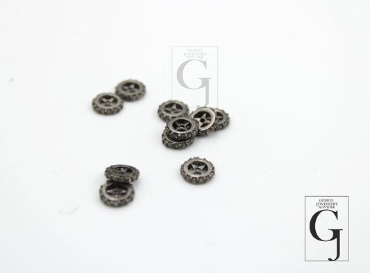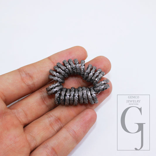 Rosecut Pave Diamond Rondelles 925 Sterling Silver Handmade Silver Finish Diamond Rondelles