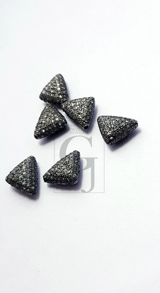Beautiful Triangle Design Rosecut Pave Diamond Beads 925 Sterling Silver Handmade Silver Finish Diamond Beads