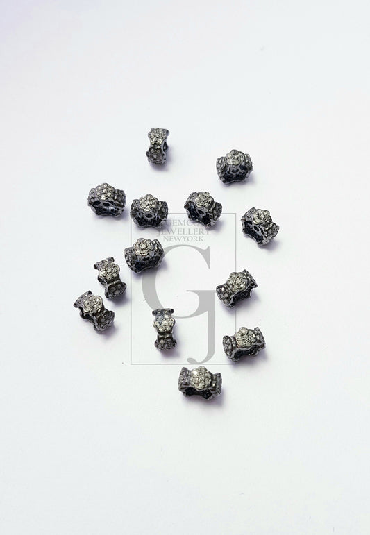Latest Designer Rosecut Pave Diamond Bead 925 Sterling Silver Handmade Silver Finish Diamond Bead