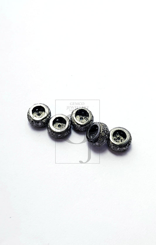 1pc Pave Diamond Beads/Spacers Design Pave Diamond 925 Sterling Silver Handmade Jewelry Diamond Fine Jewelry Supplies 10mm/12mm Size