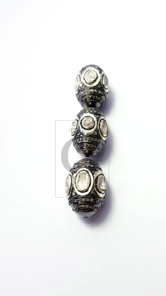 Oval Shaped Rosecut Pave Diamond Bead 925 Sterling Silver Handmade Silver Finish Diamond Bead 22mm Size
