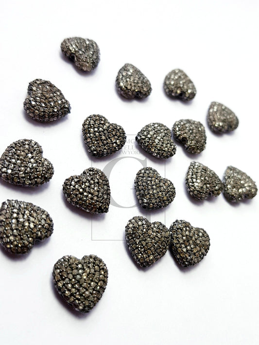 1pc Heart Shape Rosecut Pave Diamond Bead 925 Sterling Silver Handmade Silver Finish Diamond Bead 10mm Size Jewelry Making Supplies