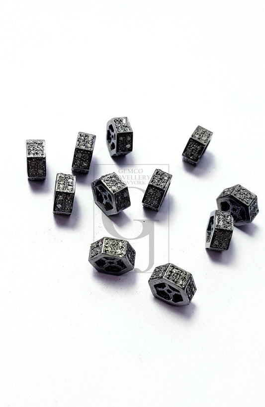 Hexagon Shaped Rosecut Pave Diamond Bead 925 Sterling Silver Handmade Silver Finish Diamond Bead