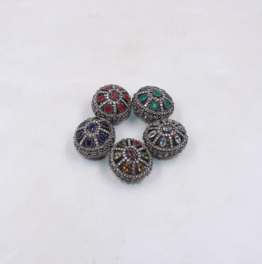 1 Pc Pave Rosecut Diamond Spacer Bead – Handmade 925 Sterling Silver with Sapphire, Ruby, Garnet, Peridot & Emerald