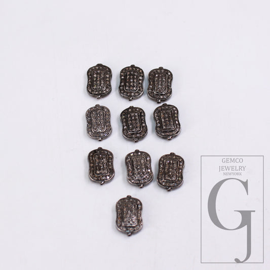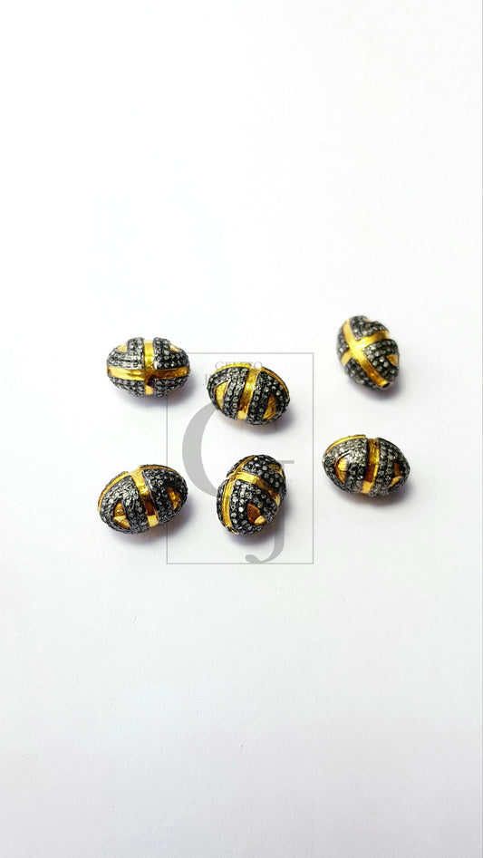 Oval Shaped Design Rosecut Pave Diamond Bead 925 Sterling Silver Handmade Silver Finish Beautiful Diamond Bead 15mm