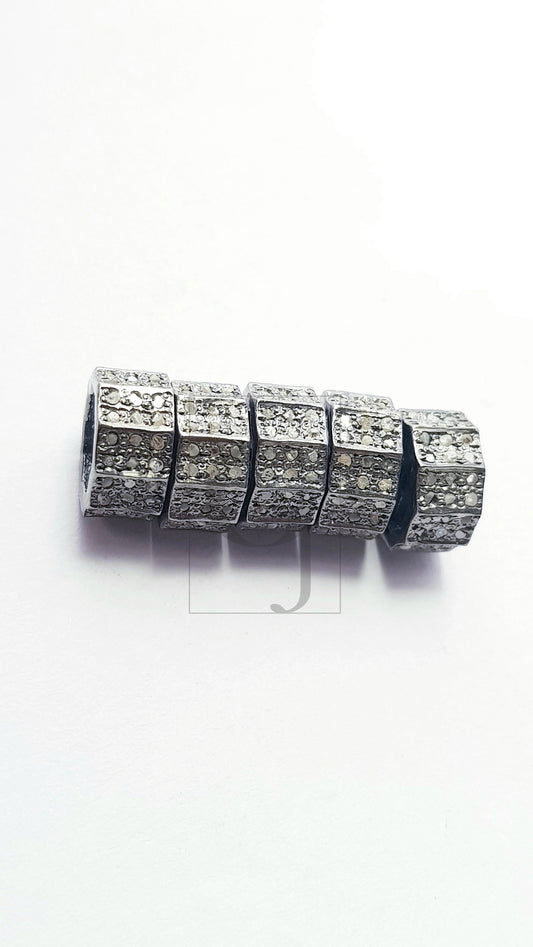 1pc Hexagon Shaped Rosecut Pave Diamond Bead 925 Sterling Silver Handmade Silver Finish Bead Diamond 10mm Size Rondelle Jewelry Supplies