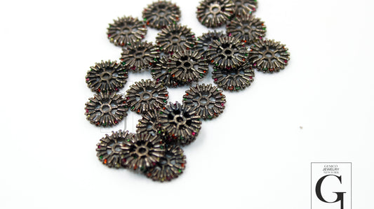 1pc Oxidized And Vermail Gold Rosecut Black Diamond Bead 925 Sterling Silver Handmade Silver Finish Heart Shapped Black Diamond Bead 10mm