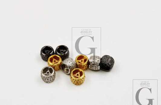 Multi Stones Rondelles Pave Diamond Bead Spacers Design Pave Diamond 925 Sterling Silver Handmade Jewelry Diamond Fine Jewelry Supplies