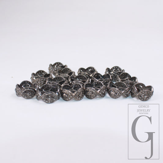 12mm Pave Rosecut Diamond 925 Sterling Silver Handmade Pave Diamond Rondelles / Bead 12mm 2 Lines Diamond Rondelle Jewelry Supplies