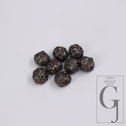 Very Beautiful Antique Look Designer Rosecut Pave Diamond Bead 925 Sterling Silver Handmade Silver Finish Diamond Bead