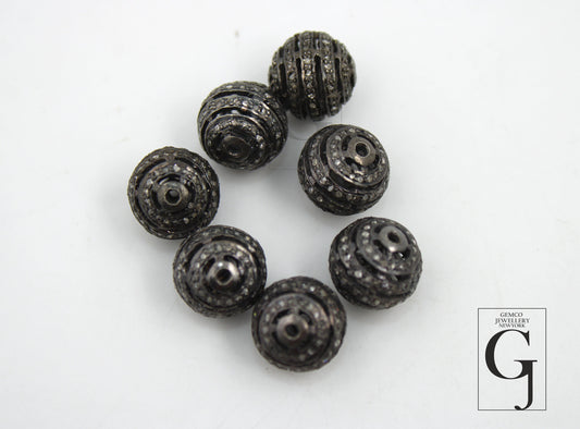 1pc Oxidized Finish Designer Rosecut Pave Diamond Bead 925 Sterling Silver Handmade Silver Finish Diamond Bead 11mm Size Diamond Jewelry