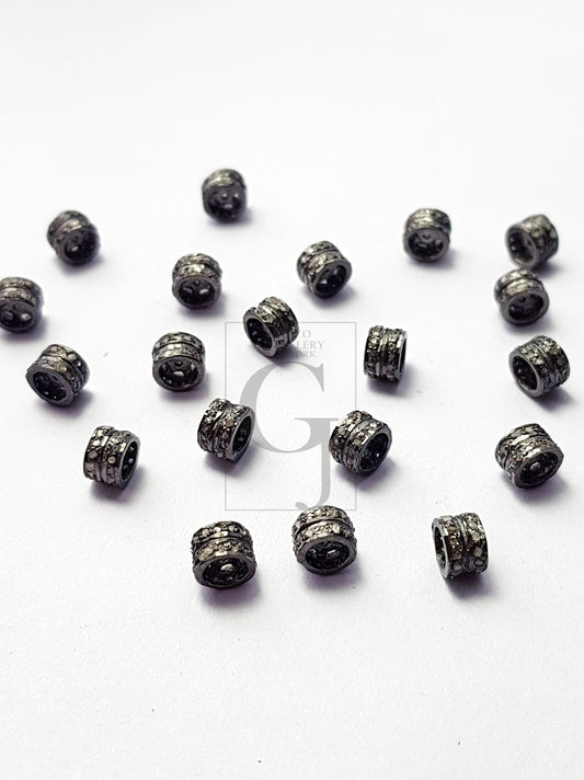 1p Pave Diamond Rondelles Bead 2 Line Diamond Design Pave Rosecut Diamond 925 Sterling Silver Handmade 8mm Size Beads Jewelry Supplies
