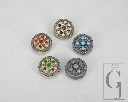 Beautiful Button Pave Diamond Beads / Spacers Design Pave Diamond 925 Sterling Silver Handmade Jewelry Diamond Jewelry Fine Jewelry 17mm