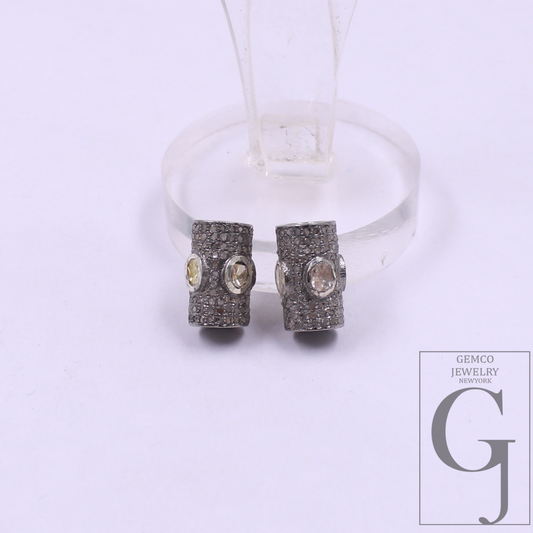 Natural Polki Pipe Bead With Pave Diamonds, Spacers 925 Sterling Silver Handmade Finish Beads For Jewelry Supplies