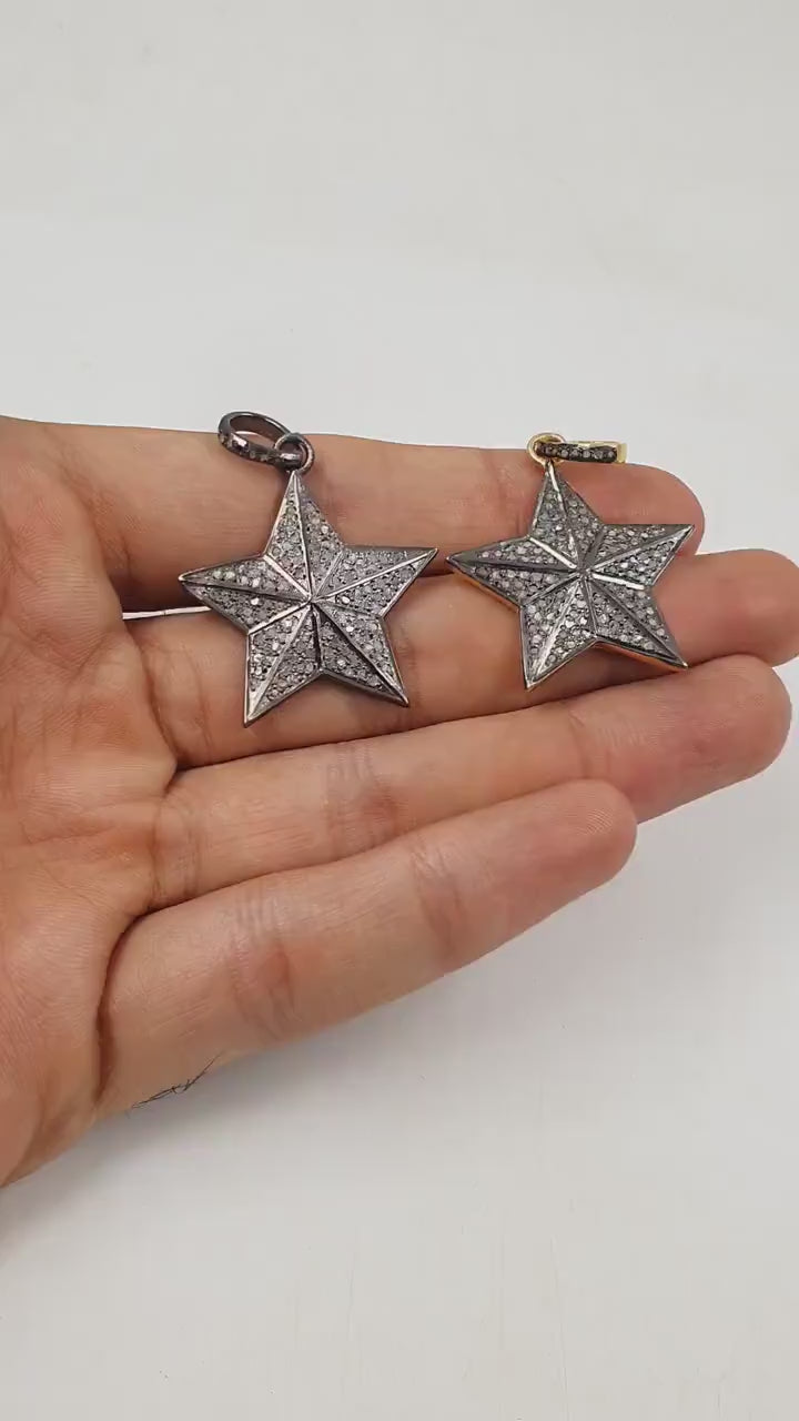 Expertly crafted with sterling 925 silver and exquisite rose cut diamonds, this designer star pendant is a stunning addition to any jewelry collection. Handmade with a beautiful finish, it exudes elegance and sophistication. Elevate your style with this charming necklace pendant that sparkles with pave diamonds.