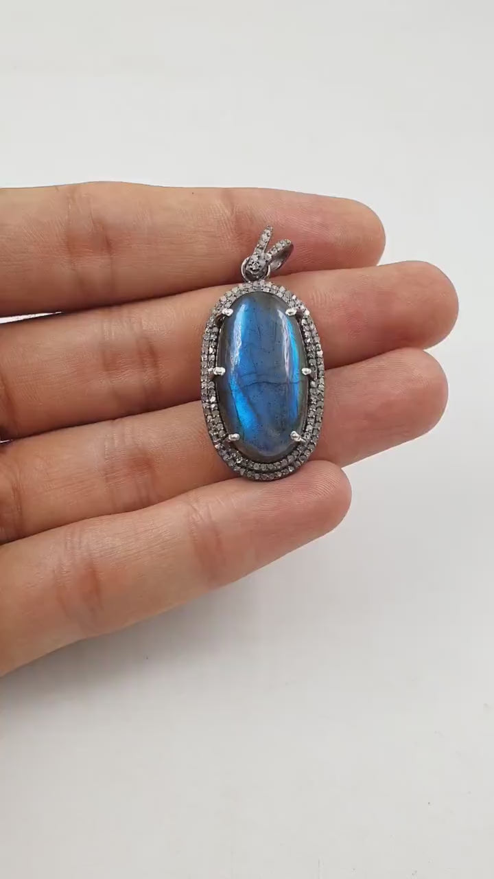 1pc Beautiful Designer Labradorite Pendant Rosecut Pave Diamond Pendant 925 Sterling Silver Handmade Finish Diamond Charms Necklace Pendant