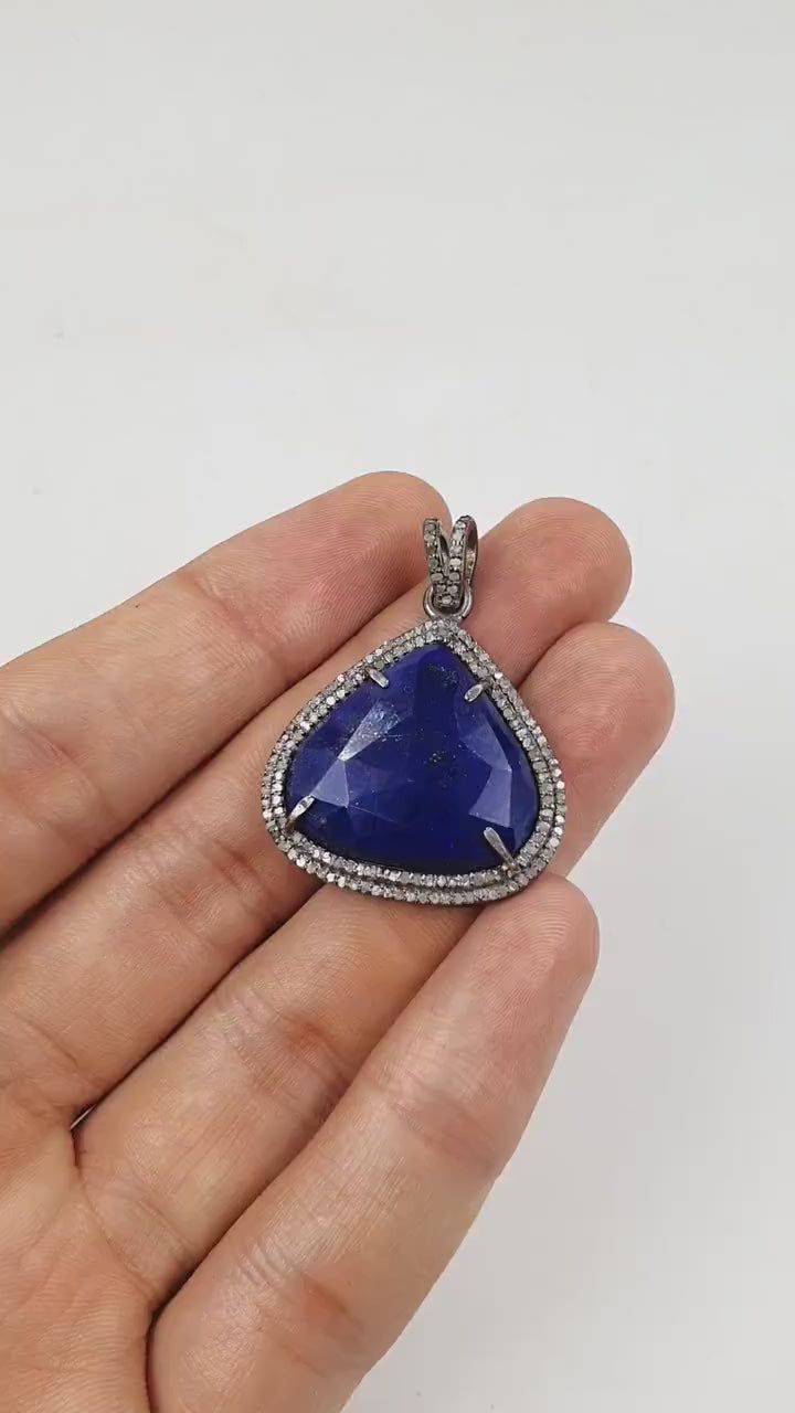 1pc Beautiful Designer Lapis Pendant Rosecut Pave Diamond Pendant 925 Sterling Silver Handmade Finish Diamond Charm Necklace Pendant Jewelry