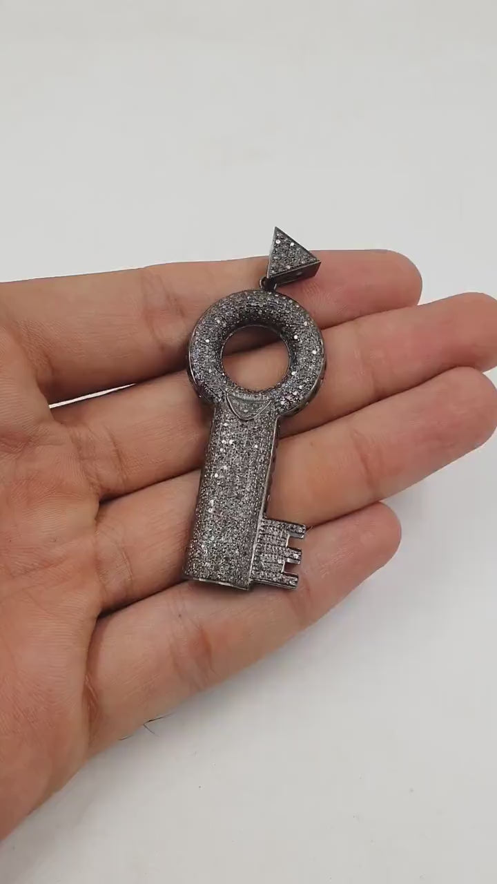 Key Pendant Design Brilliant Cut Diamond Pave Diamond Pendant 925 Sterling Silver Handmade Finish Beautiful Diamond Jewelry Pendant Jewelry